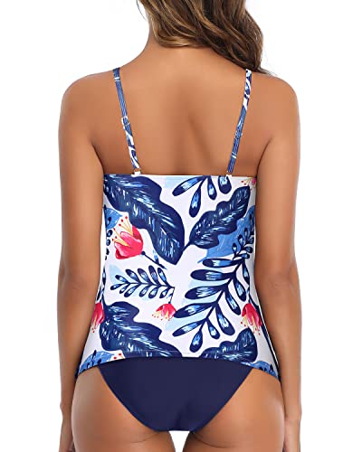 Padded Push Up Tankini Swimsuit Open Back-White And Blue Floral